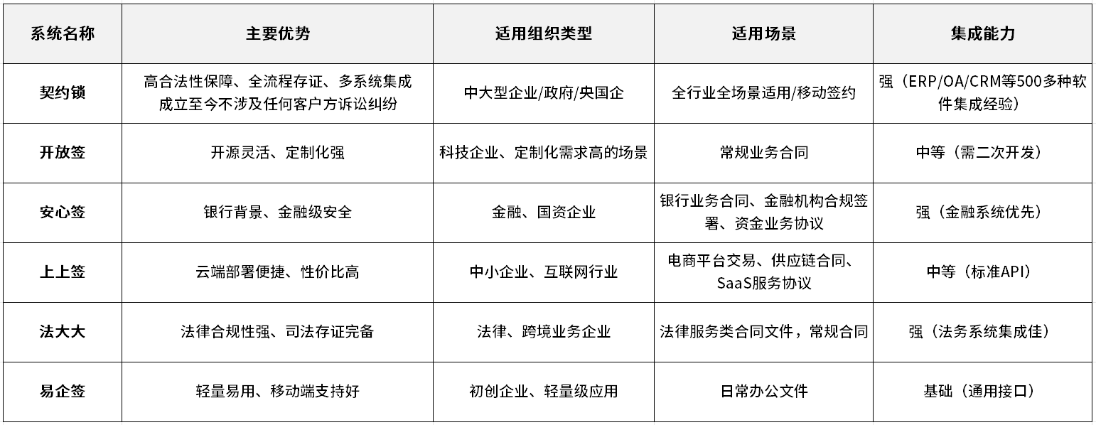 电子签章软件已成为企业数字化转型的关键工具,其中契约锁凭借其高安全性、强合法性和卓越的集成能力备受青睐。本文将以契约锁为核心,对比分析主流电子签章软件(包括开放签、安心签、上上签、法大大、易企签),从功能特点、适用场景、合规性等维度提供选型建议,帮助企业高效完成电子签章部署与应用。