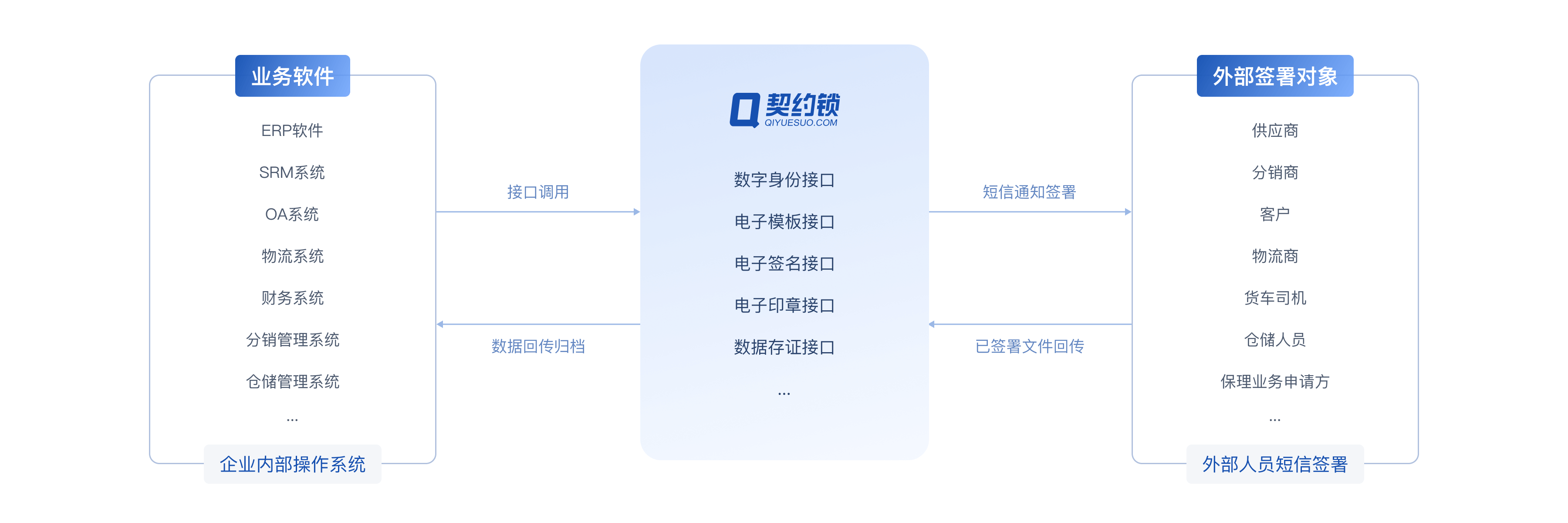 契约锁在服务客户的过程中,已经与超500多种软件实现集成应用,其中包括OA、ERP、HRM、SRM、CRM、HIS医院信息系统等各类管理软件,帮助组织拓展现有软件电子签功能,打通业务全程数字化最后一公里。
