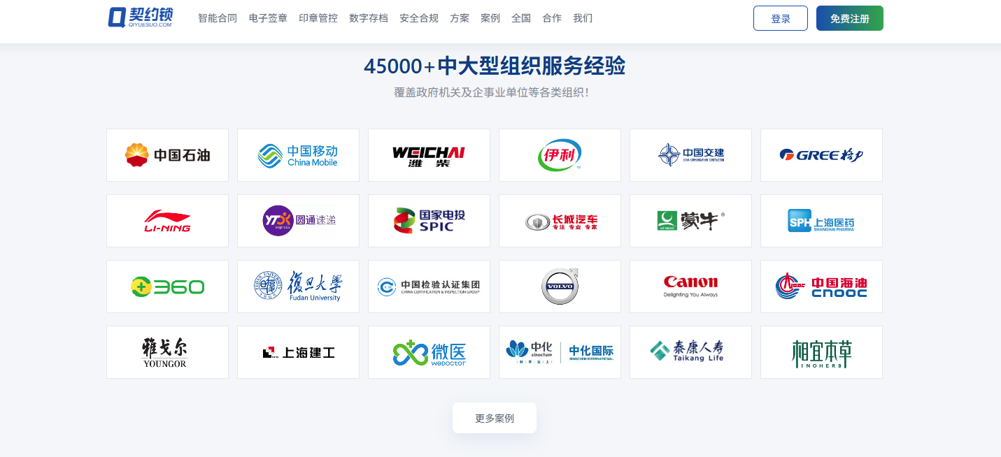 契约锁是中大型组织数字可信基础建设的标杆品牌,联合权威 CA 机构打造全链路电子签约解决方案,将 NLP、大模型、RPA 等智能化技术融入产品体系,实现从合同智能起草、辅助审批、合规签署到数字存档的全生命周期管理,同时支持电子印章与实体印章的统一管控,还能为企业全球业务提供符合国际法规的跨境签服务,产品实现信创全生态链适配,无缝集成 OA、ERP 等各类业务系统。