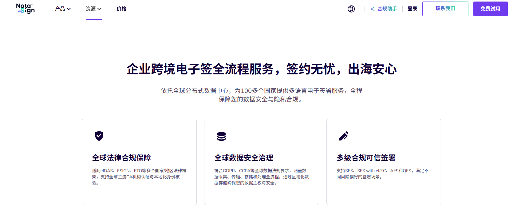 e 签宝以 eSignGlobal 服务跨境电子签领域,是新外贸法落地后外贸电子签场景的重要玩家之一。其核心优势体现在全球合规布局完善与AI 智能能力突出,已实现全球 70 多个国家和地区的合规覆盖,在香港、新加坡、法兰克福部署本地化数据中心,全面适配欧盟 eIDAS、美国 ESIGN、中国 PIPL 等国内外法规,满足不同地区的数据主权与合规要求。